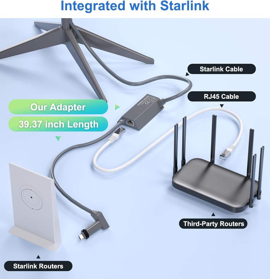 Reliable for Multiple Users: In offices or shared spaces, the adapter allows Starlink to integrate smoothly into an existing wired network infrastructure.